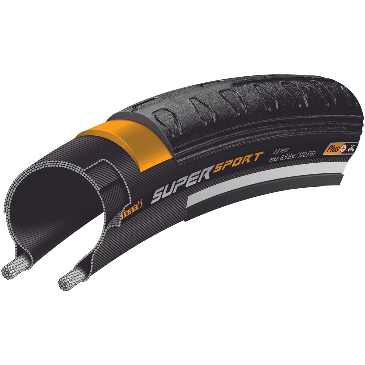 Continental's Super Sport Plus er et fiksydekk med en ekstra tykk slitebane. Den har en slank, slank profil med tidløse, nøytrale designelementer. Takket være en svært elastisk spesiell gummiinnsats gir den maksimal punkteringsbeskyttelse og avviser alle slags fremmedlegemer. En slitesterk og gripende profil garanterer punkteringsfri ridning, mil etter kilometer.