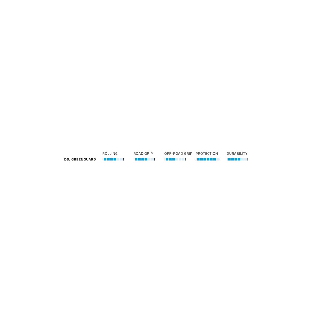 Continental og Schwalbe har begge en 7-trinns skala, og vi har valgt å merke alle i klasse 1-3 som lav, 4-5 som middels og 6-7 som høy.