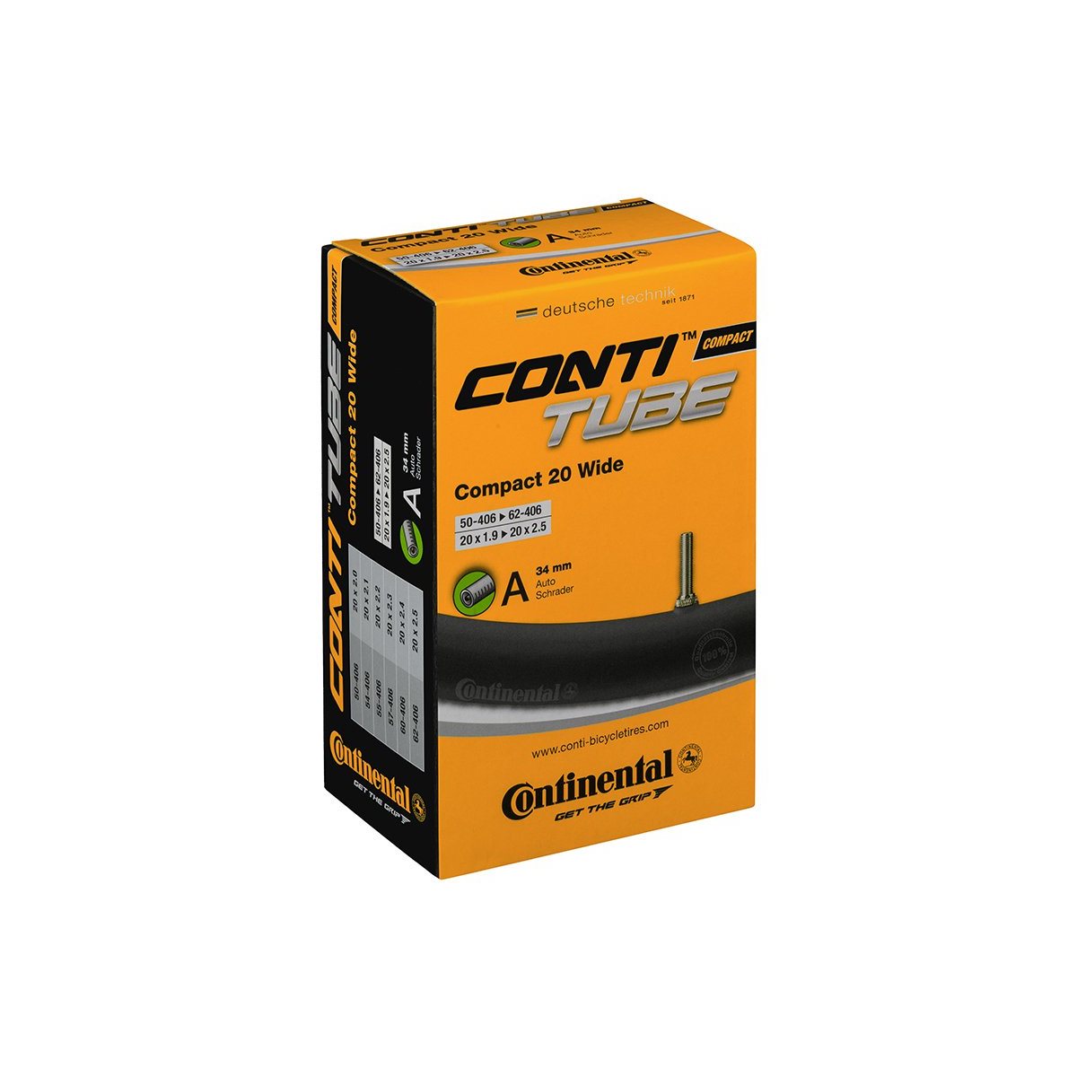 Sykkelslange Continental Compact Wide 20'' Schrader 34mm 50/62-406