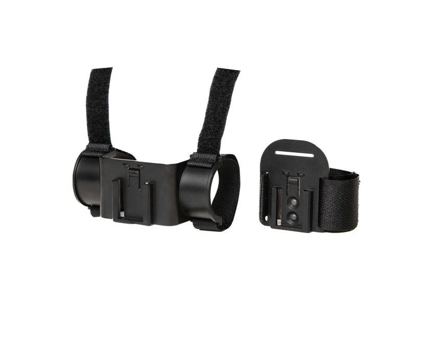 Lampfeste for montering av Snok på sykkelstyret og batterifeste for montering av Snok-batteri på sykkelrammen.