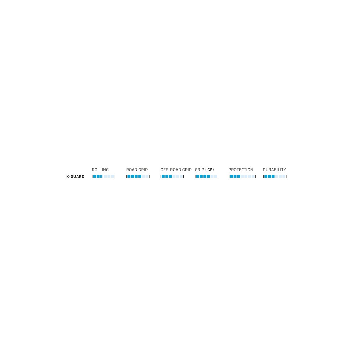 Continental og Schwalbe har begge en 7-trinns skala, og vi har valgt å merke alle i klasse 1-3 som lav, 4-5 som middels og 6-7 som høy.